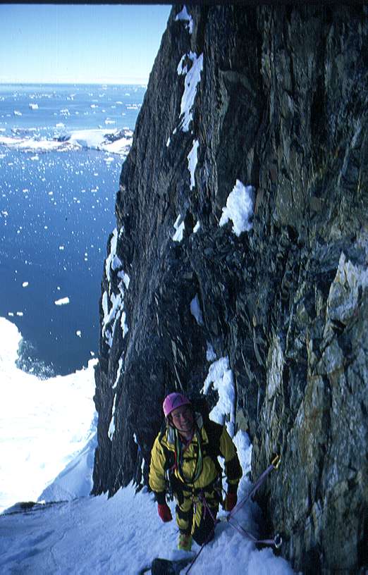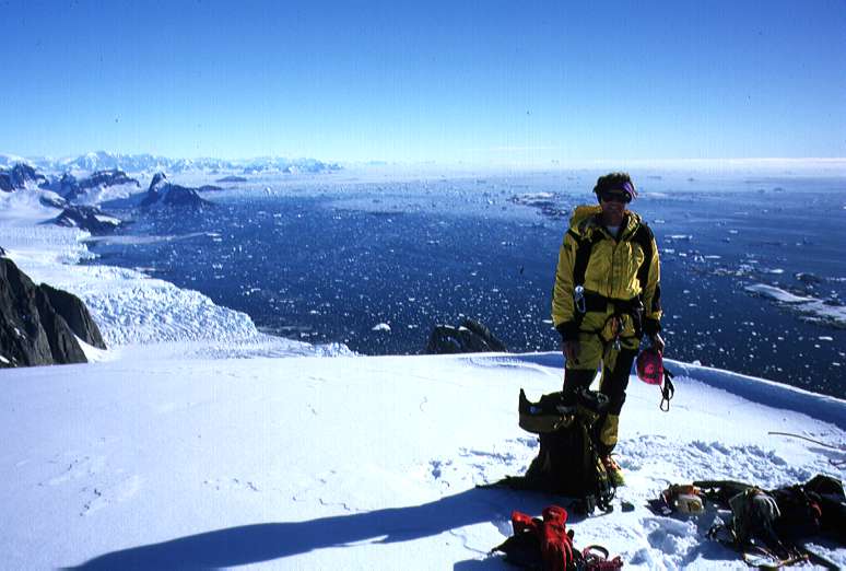 Right: On the summit. A speedy 9 hours from shore to shore, but