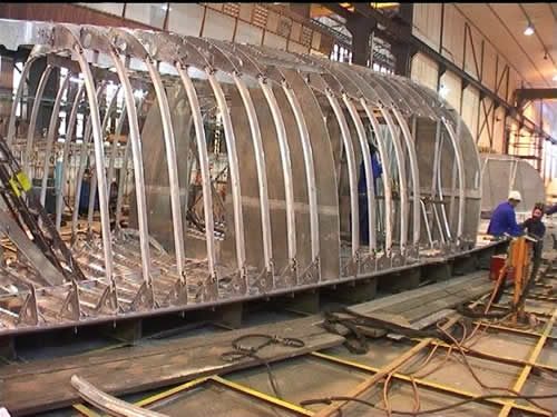 The structure of the watertight bulkheads is prefabricated on the shop floor.
