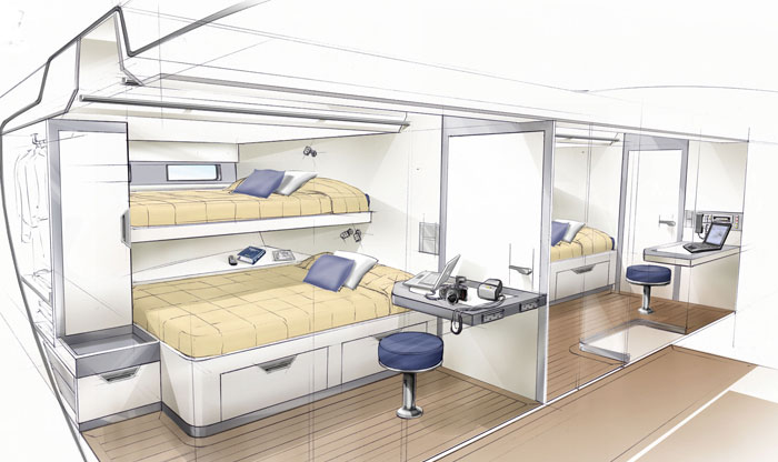 increased to four billeted in two cabins aft outboard of a lounge/library